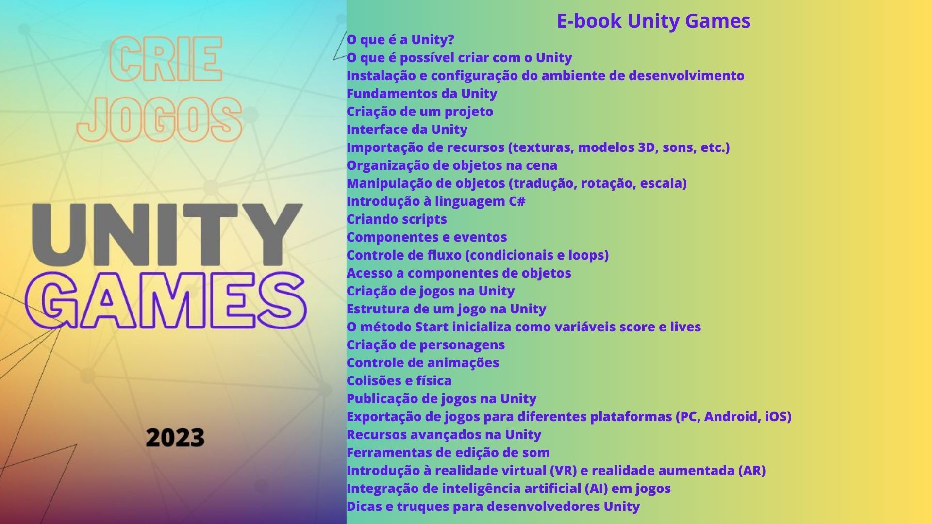 Unity uma ferramenta para criar jogos multiplataforma tais como computadores, consoles, dispositivos móveis e até mesmo dispositivos de realidade virtual e aumentada